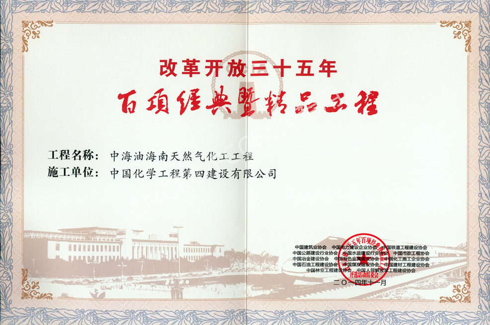 中海油海南天然氣化工工程改革開放35年百項經典工程獎