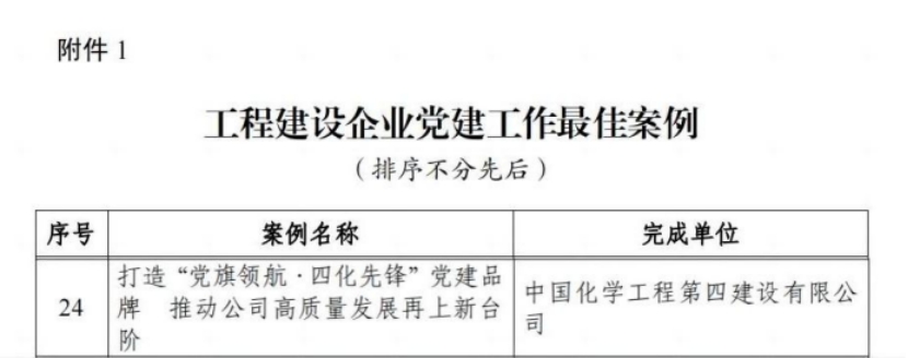 《打造“黨旗領航·四化先鋒”黨建品牌 推動公司高質量發展再上新臺階》是公司黨委打造的黨建品牌案例。該案例介紹了公司黨委近年來圍繞全面建成“百億化建”,堅持“引領方向、凝聚力量、融入中心、創新有為”的黨建工作理念,以“12345”黨建工作法為抓手,實施黨建與中心工作融合路徑,奮力書寫建設國內一流工程公司“高質量黨建、高質量改革和高質量發展”三份答卷。