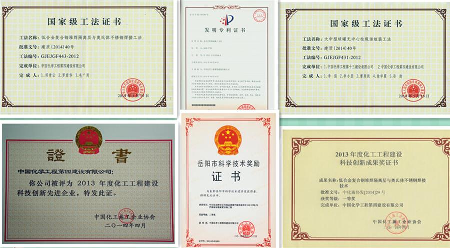 在這春暖花開(kāi)的日子里,從國(guó)家知識(shí)產(chǎn)權(quán)局、建設(shè)部、岳陽(yáng)市科技局等傳來(lái)陣陣喜訊:建筑工程分公司嚴(yán)偉申報(bào)的“復(fù)式冷箱基礎(chǔ)施工方法”和西北分公司羅長(zhǎng)彪申報(bào)的“托普索徑流合成塔催化劑裝填配套機(jī)具”被國(guó)家知識(shí)產(chǎn)權(quán)局授權(quán)為國(guó)家發(fā)明專利和實(shí)用新型專利;“低合金復(fù)合鋼堆焊隔離層與奧氏體不銹鋼焊接工法”和“大中型球罐無(wú)中心柱現(xiàn)場(chǎng)組裝工法”榮獲由中華人民共住房和城鄉(xiāng)建設(shè)部頒發(fā)的國(guó)家級(jí)工法證書(shū);“中石化長(zhǎng)嶺分公司油品質(zhì)量升級(jí)改造項(xiàng)目240萬(wàn)噸年汽柴油加氫裝置安裝工程”榮獲由岳陽(yáng)市政府頒發(fā)的重大工程科技成果二等獎(jiǎng);“低合金復(fù)合鋼堆焊隔離層與奧氏體不銹鋼焊接技術(shù)”榮獲由中國(guó)化工施工企業(yè)協(xié)會(huì)頒發(fā)的2013年度化工工程建設(shè)科技創(chuàng)新成果一等獎(jiǎng);公司榮獲2013年度全國(guó)化工工程建設(shè)科技創(chuàng)新先進(jìn)企業(yè)光榮稱號(hào)。