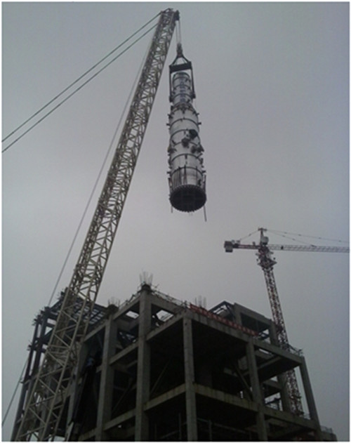 江蘇分公司山西潞安項目部成功吊裝煤氣化框架氣化爐