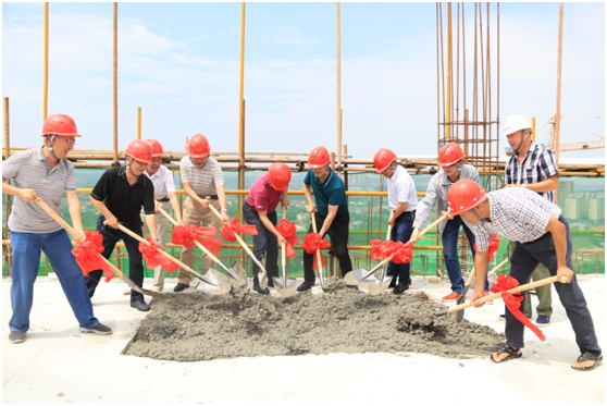 在簡樸的封頂儀式上,胡流芳代表公司向承擔項目施工的岳陽君達勞務有限公司表示祝賀,向承擔工程項目管理的公司項目部、監理公司以及專業承包商、供應商表示感謝!胡流芳說:四化大廈凝聚了公司幾代人的追求與夢想。如期建成大廈,對公司當前提振信心,凝聚力量,突破艱難險阻有著特殊的意義。