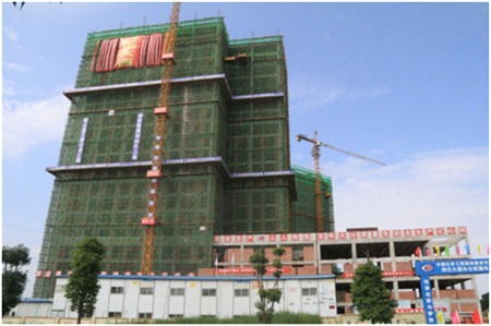 據公司四化大廈項目部現場執行經理廖華軍介紹:四化大廈項目建筑面積27720m2,分地下1層、地上20層,建筑高度92.9m。項目自2015年6月15日開工以來,在項目部施工人員的共同努力下,完成了土方工、樁基、地下室、主體結構工程,  共完成混凝土澆筑14160m3,鋼筋安裝1485噸,施工人員投入33萬工時,在各分項驗收過程中合格率達100%,優良率達90%以上,得到岳陽市政府、經開區管委會的肯定,在岳陽市文明衛生城市、國家安全監督檢查、國務院消費專項檢查、湖南省質量安全文明示范工地、建筑工程優質工地等各項檢查中均為優良,受到一致好評。