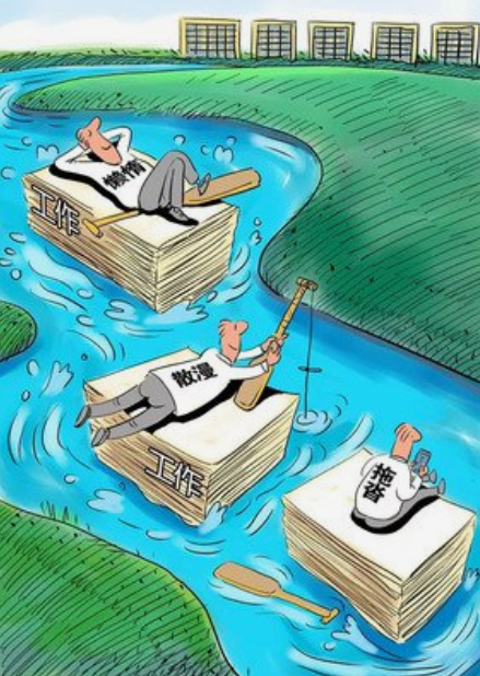 工作的時候玩忽職守、消極怠工,不認真,馬虎了事,三天打魚兩天曬網。