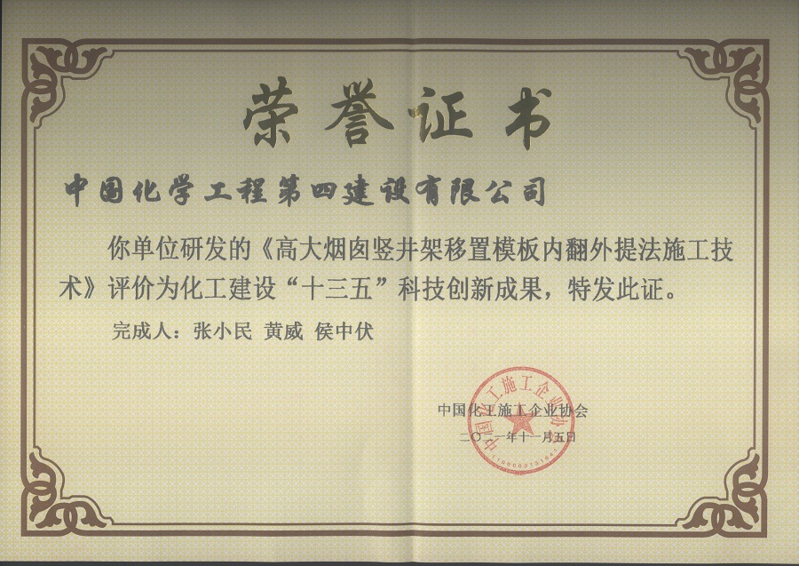 7月25日,從化工協會十屆三次會員代表大會暨科技創新大會傳來喜訊,公司榮獲兩項化工建設“十三五”科技創新成果獎,分別為華南公司完成的高大煙囪豎井架移置模板內翻外提法施工技術和華東公司完成的超高煤氣化框架鋼結構模塊化安裝技術。