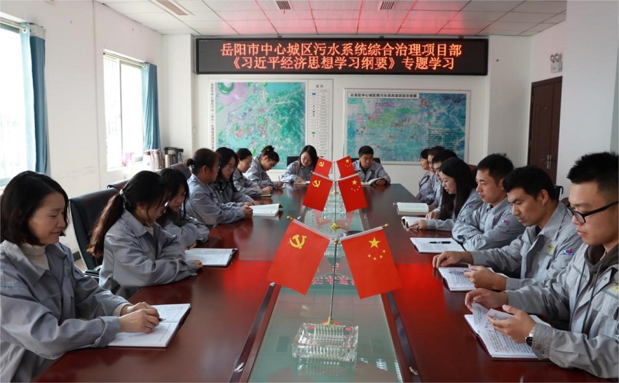 日前,岳陽污水治理項目黨支部組織開展專題學習《習近平經濟思想學習綱要》。學習中,大家聯系思想和工作實際交流學習體會,圍繞學習內容結合項目中心工作進行了深入研討交流。