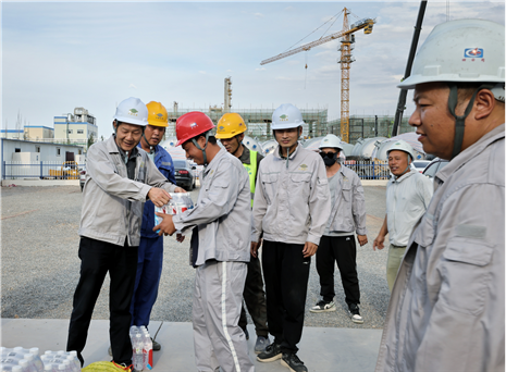 近日,華北公司赴廣西宏坤、山東裕龍項目開展“夏送清涼保安康”活動,為一線作業人員送去了西瓜、涼茶等慰問品,叮囑作業人員在施工過程中采取有效防暑降溫和安全生產保障措施,避免高溫時段疲勞作業,防止高溫中暑和其他各類生產安全事故的發生。