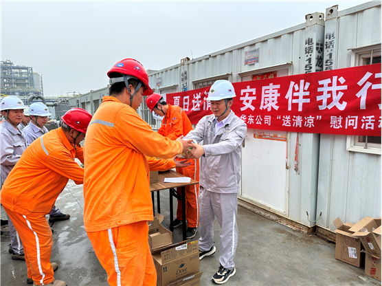 7月19日-25日,華東公司主要負責人先后赴山東裕龍、上海華誼、上海璞烯晶和嘉化二期等項目走訪慰問,為一線施工人員送去防暑降溫物品,并開展了防暑降溫常識普及和職工安全健康相關法規政策宣貫活動;同時,叮囑大家樹牢安全意識,注意防暑降溫,以健康的身體和飽滿的狀態投入到工作中去,為公司高質量發展作出新的更大貢獻。