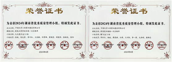 9月25日,湖南省第45次優秀質量管理小組活動表彰大會在長沙舉行。會上,華南公司貴州息烽PPA項目九天攬月QC小組、建筑工程公司恒大保交樓項目騰飛QC小組獲評湖南省優秀質量管理小組。